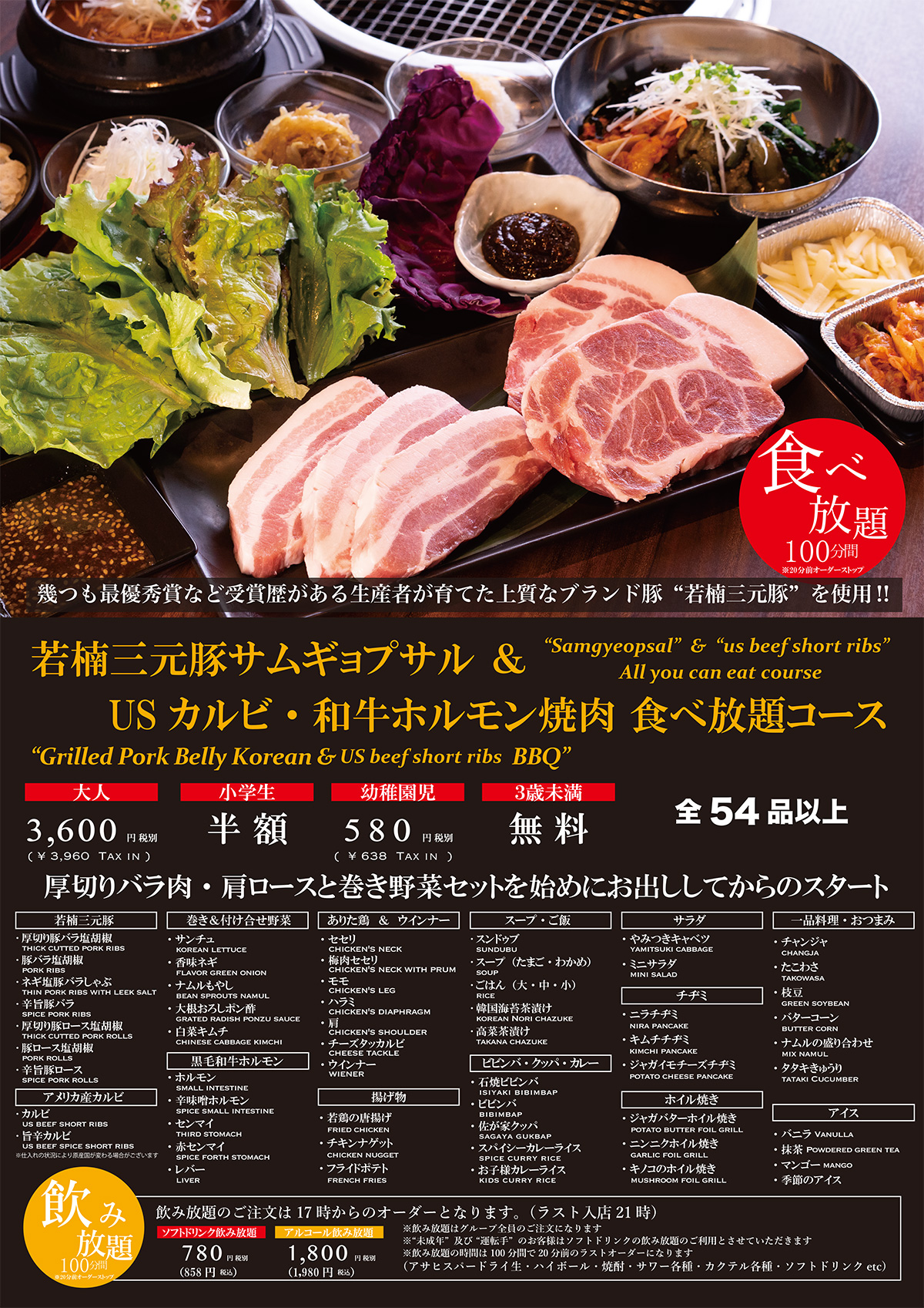 “Samgyeopsal” & “us beef short ribs” All you can eat course